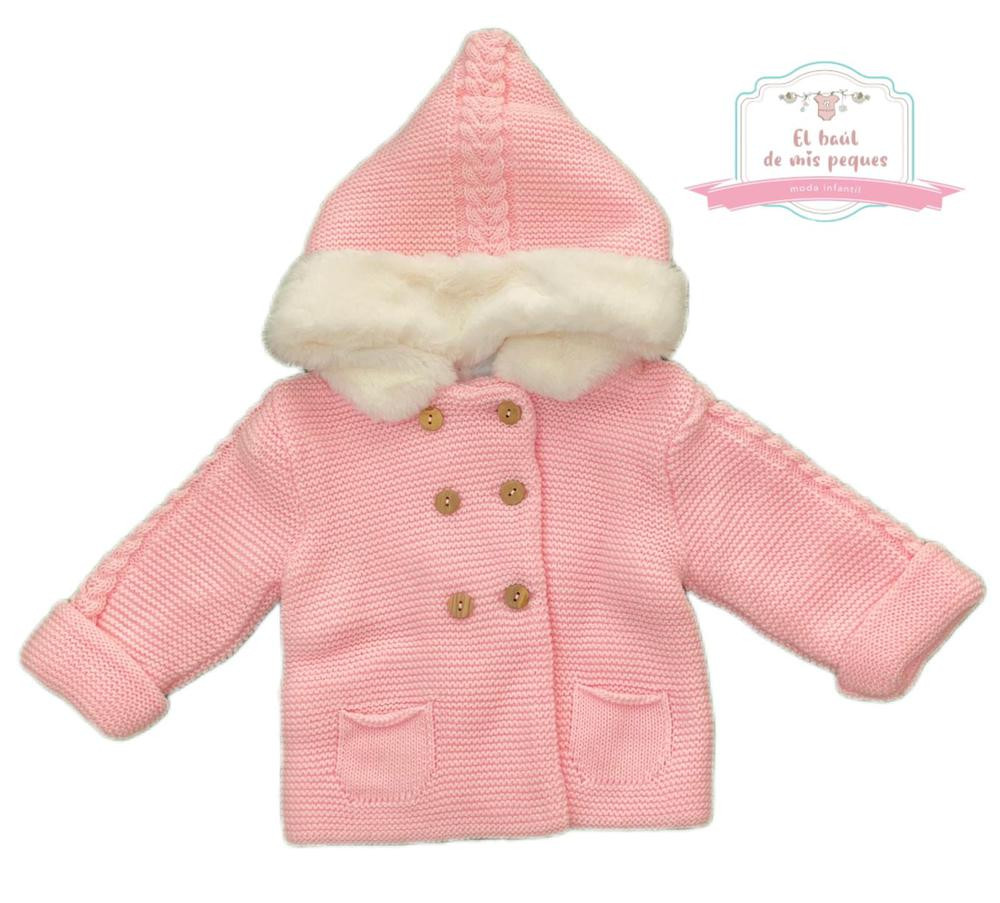 Original abrigo de lana, con gorro y con detalle pelito en el cuello, todo de lana.