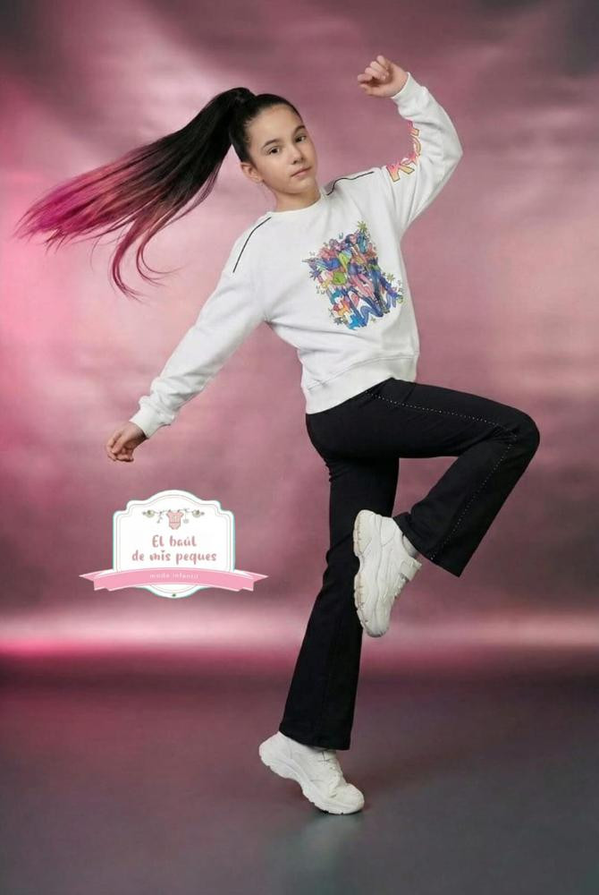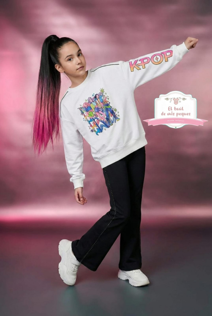 Chándal fino blanco y malla negra brillos KPOP