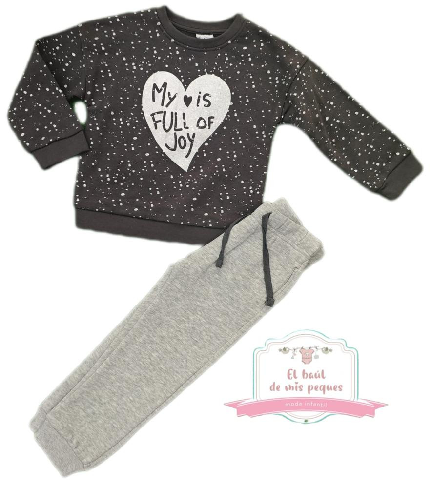 chandal niña algodon corazon gris