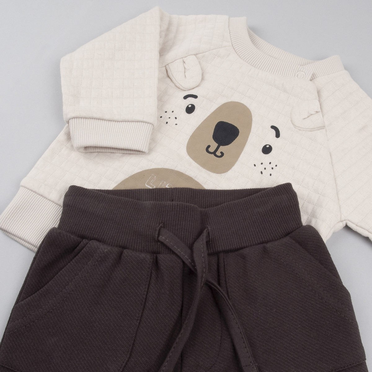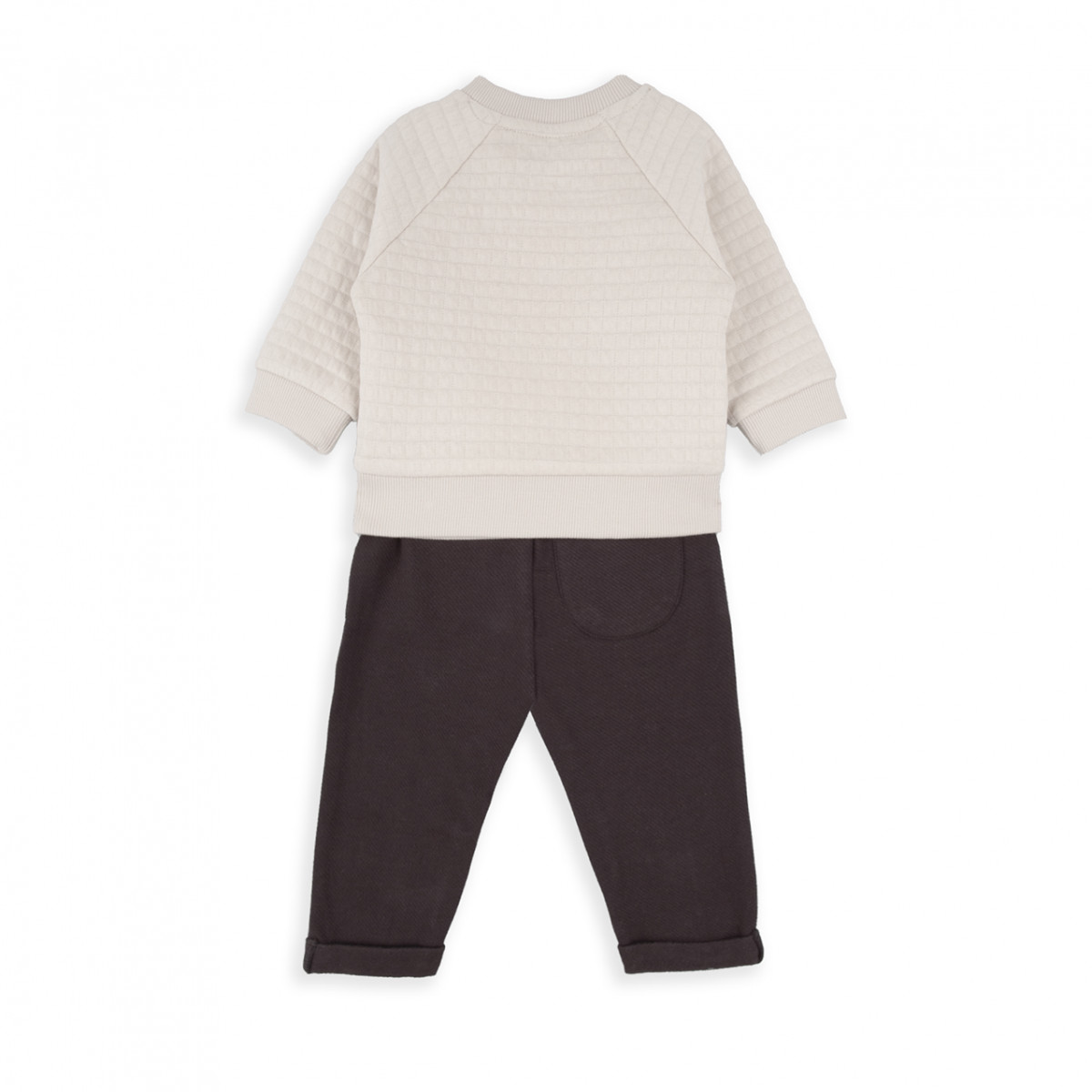 Chándal para bebé en tejido de algodón con sudadera y pantalón con bolsillo y cordón con puños ajustables.