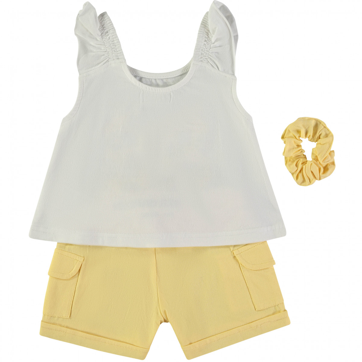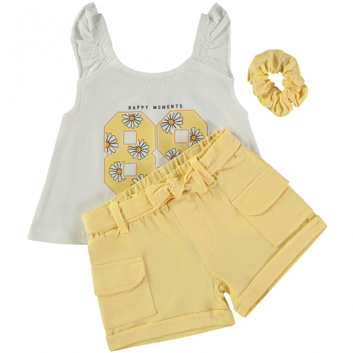 Pantalón amarillo con camiseta blanca con nº88 detallle con flores