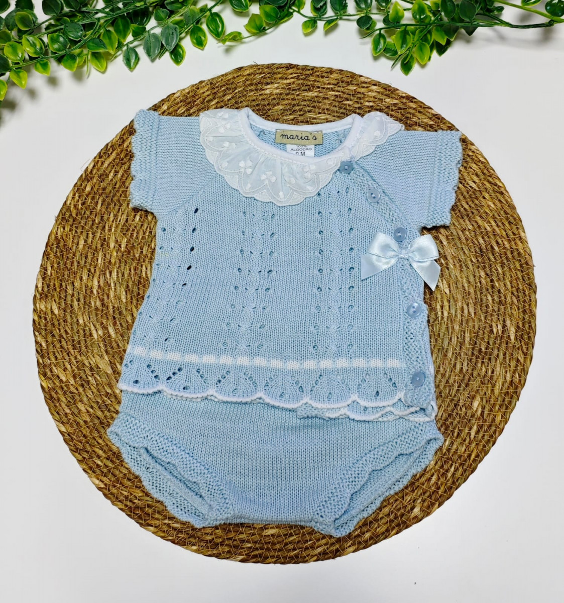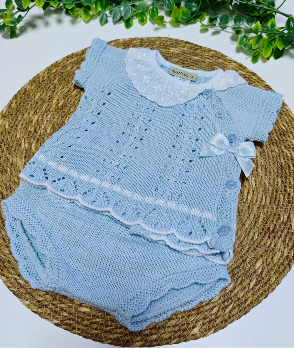 Conjunto 2 pzas punto braguita cuello Celeste