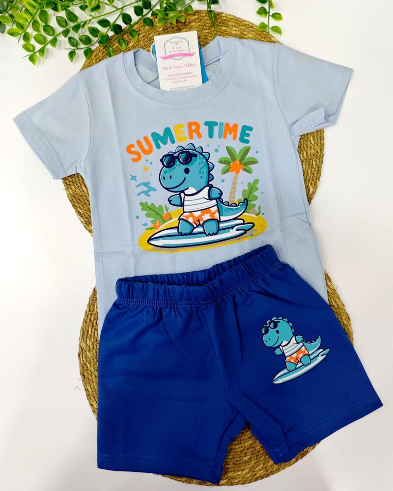 Conjunto algodón celeste y Azul Sumer Time Cocodrilo