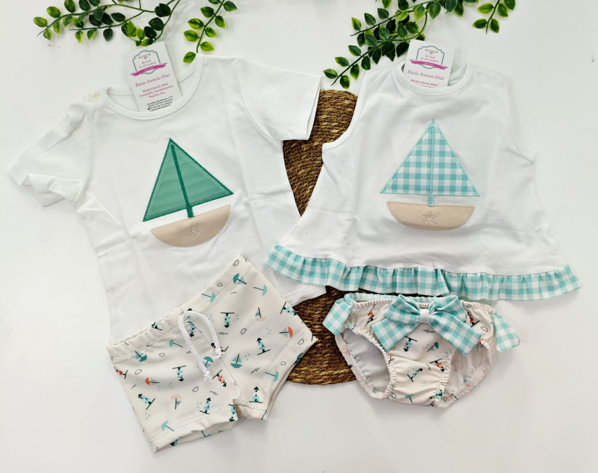 conjunto baño barco velero niño