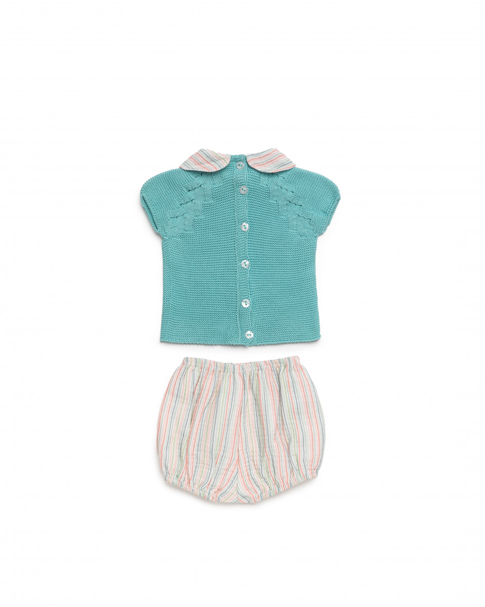 Conjunto Braga tela rayas verde agua- JULIANA