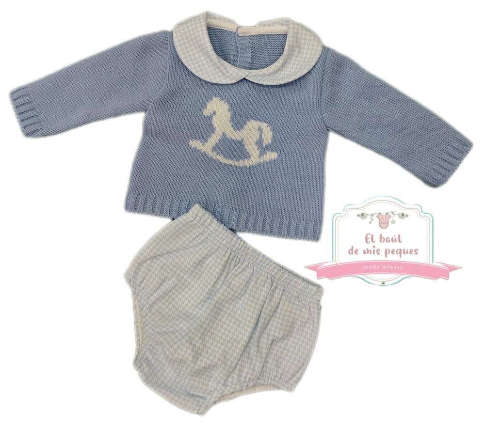 conjunto jersey lana y braga tela caballito azul