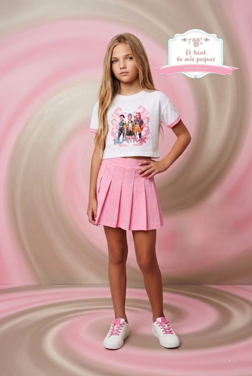 conjunto k pop falda pantalón y camiseta algodón ref:108