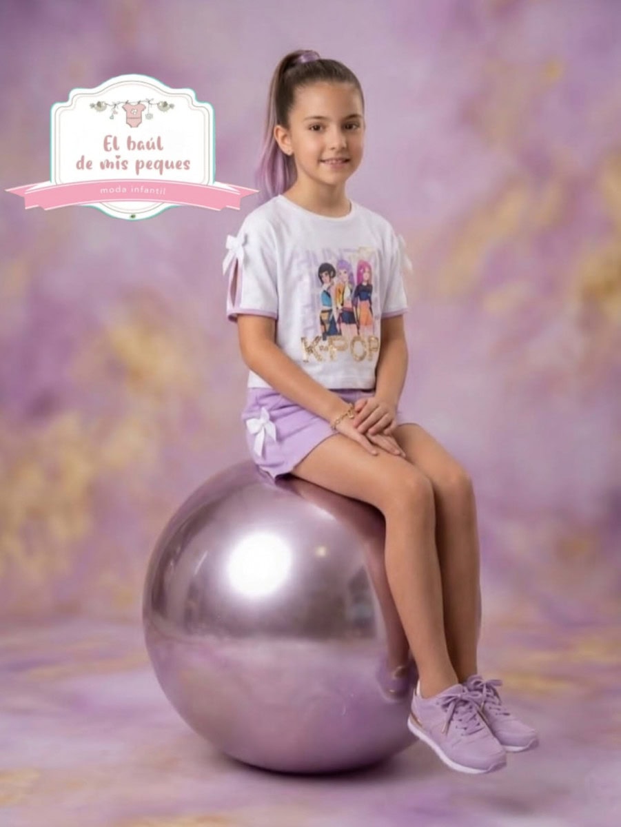 conjunto k pop pantalón y camiseta algodón lazitos lila