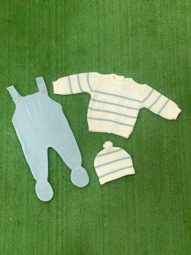 Conjunto peto + jersey gorrito pompón Verde y crudo