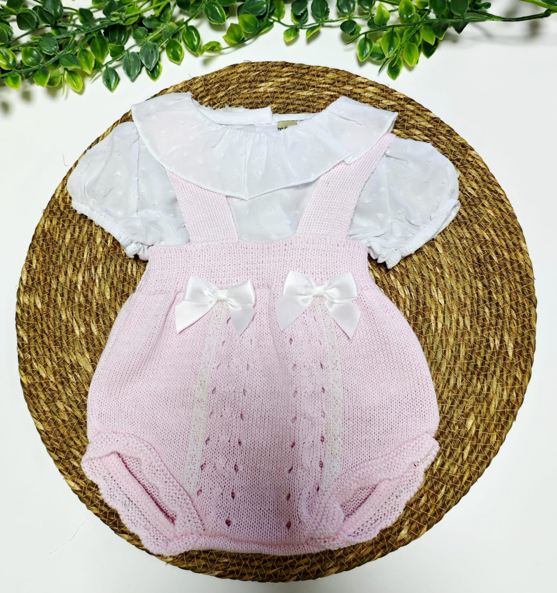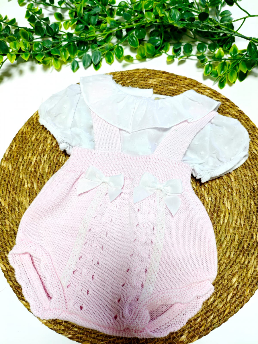 Conjunto Ranita punto y camiseta plumeti Rosa bebe