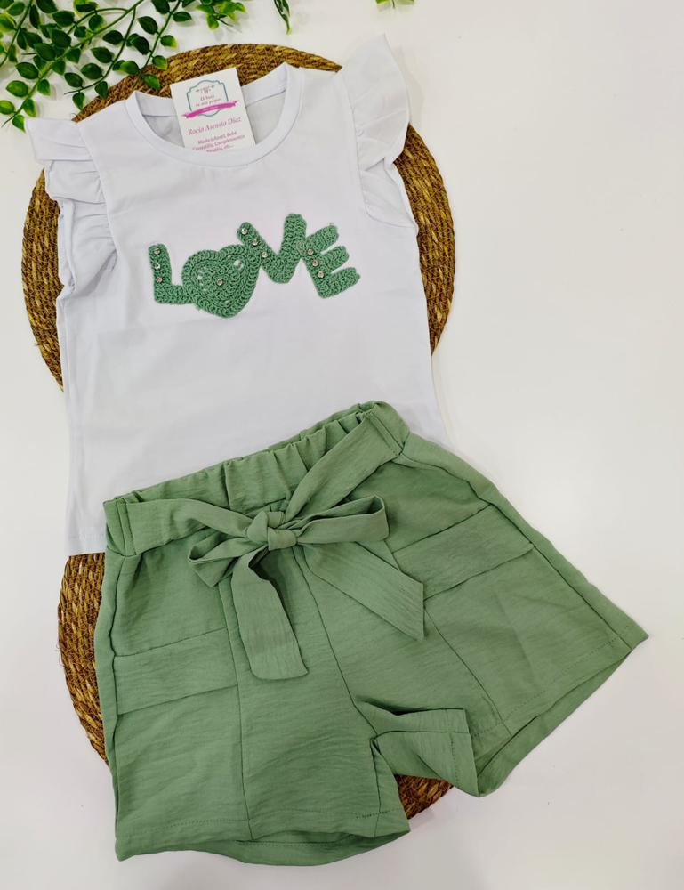 Pantalón fluido con camiseta algodón Love Crochet verde