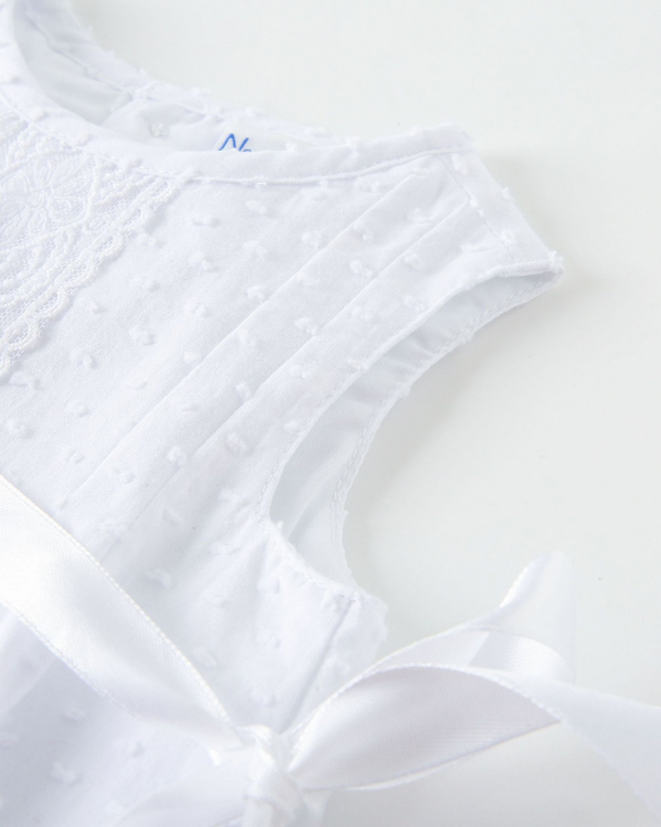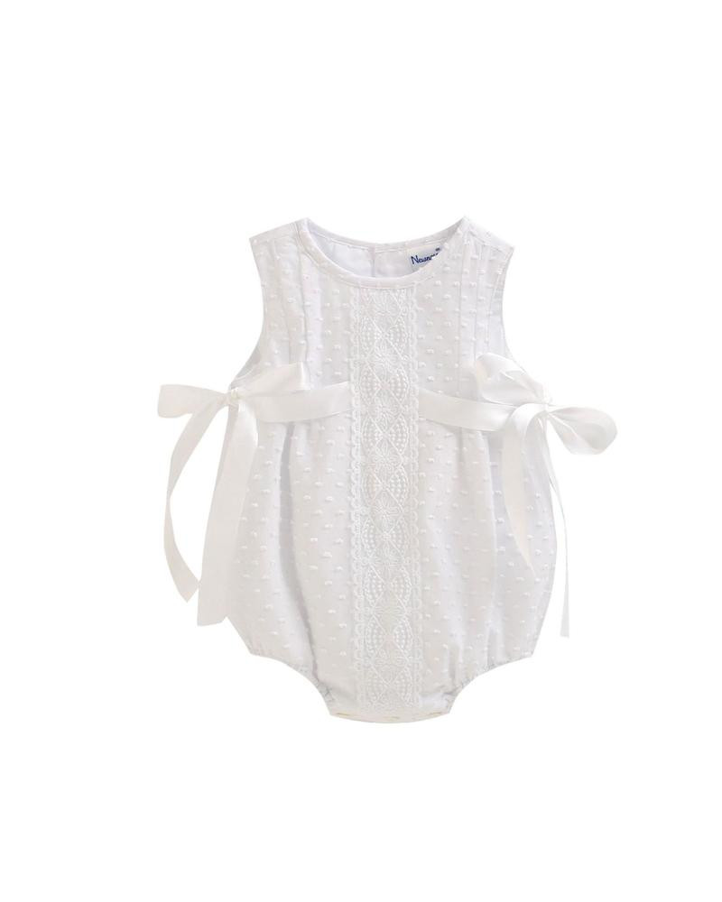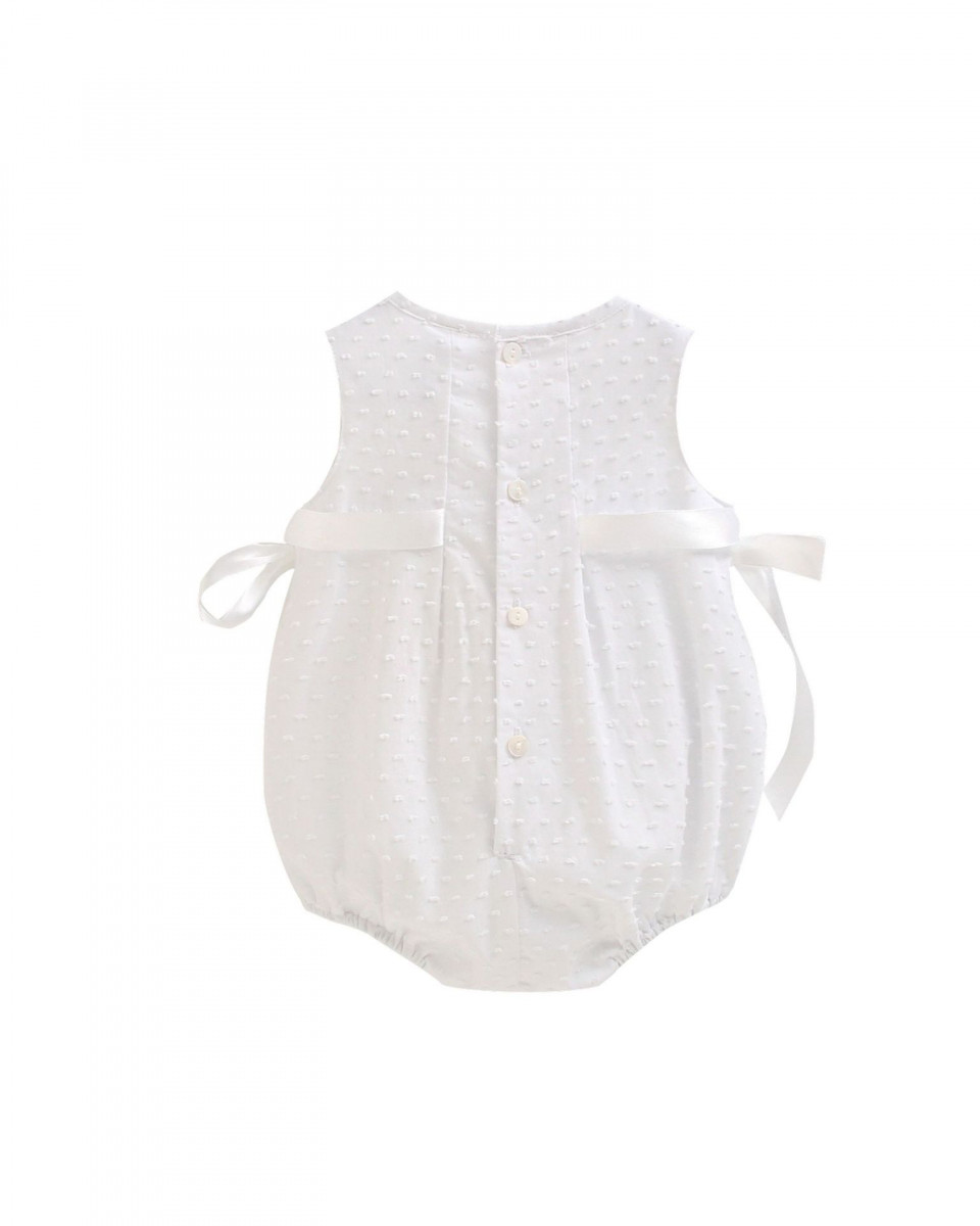 Pelele Plumeti Blanco con encaje y Lazos Blancos