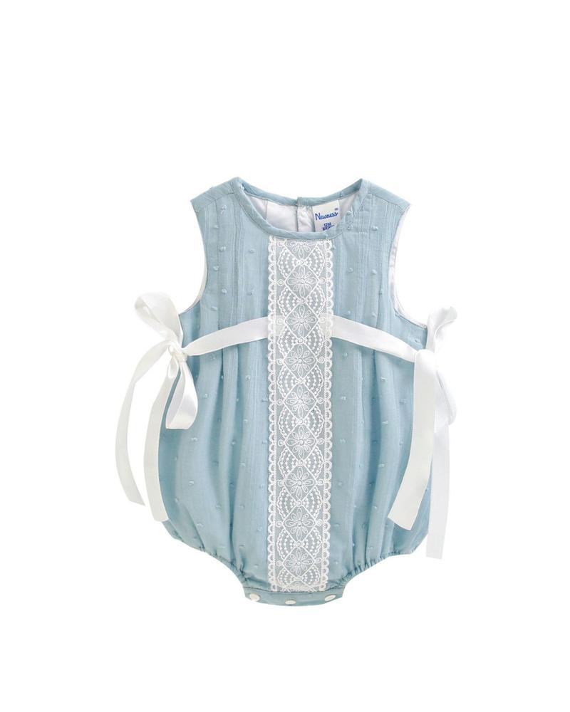 Pelele Plumeti Verde con encaje y Lazos Blancos