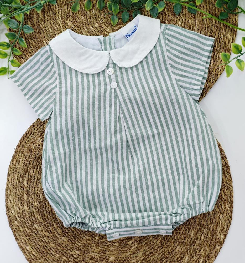 Pelele Plumeti Verde con encaje y Lazos BlancosRef: 96023